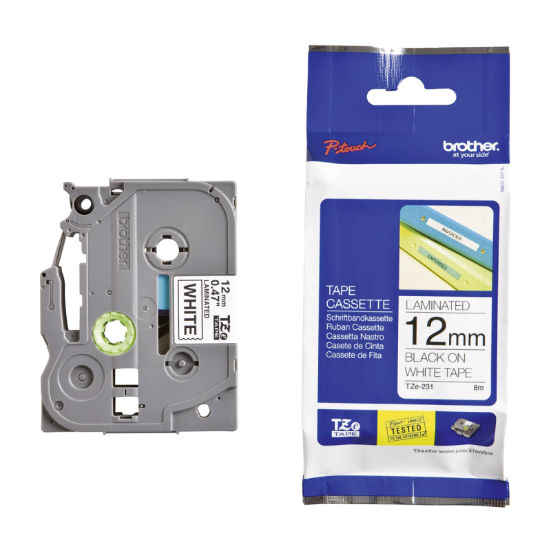 BROTHER Ruban Noir - Blanc 12mm (Référence TZE231)